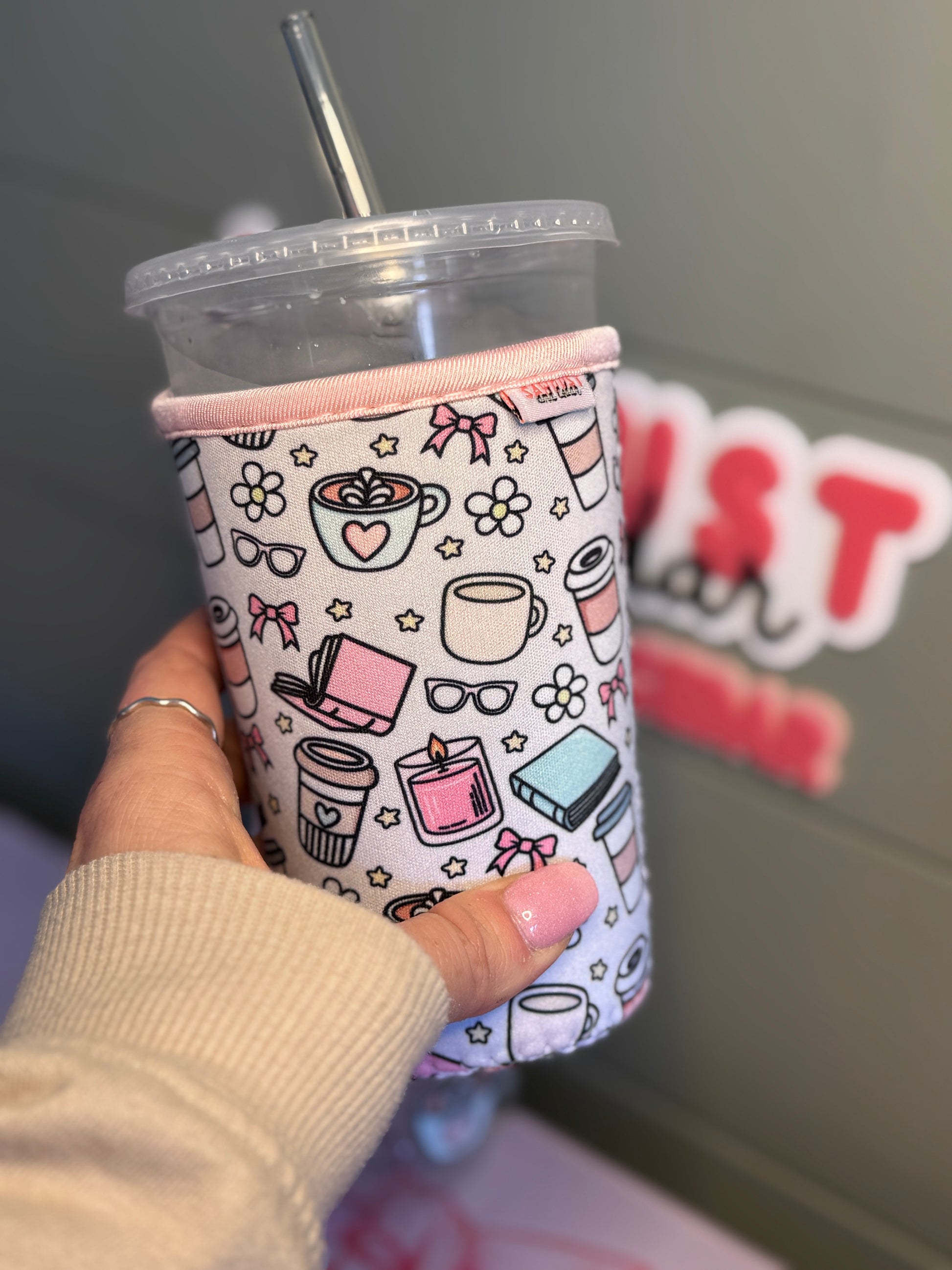 Keep your cold drinks cold and hot drinks hot with this stylish and insulated Cozy Reader Cup Coozie! Designed for book lovers and cozy vibes enthusiasts, this adorable cup sleeve features a charming pattern of coffee cups, books, candles, bows, and glasses—everything that makes a perfect reading nook moment.