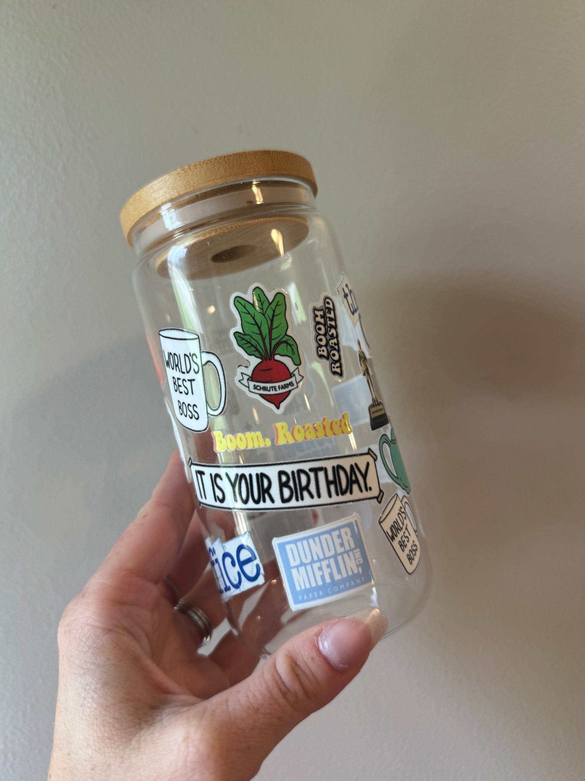 World’s Best Boss-approved. This Office-inspired cup is packed with iconic quotes, classic props, and your favorite moments from Scranton’s most chaotic paper company — from jello staplers to “It is your birthday.” banners. Perfect for binge-watchers, desk dwellers, and true fans of the world’s weirdest workplace.
