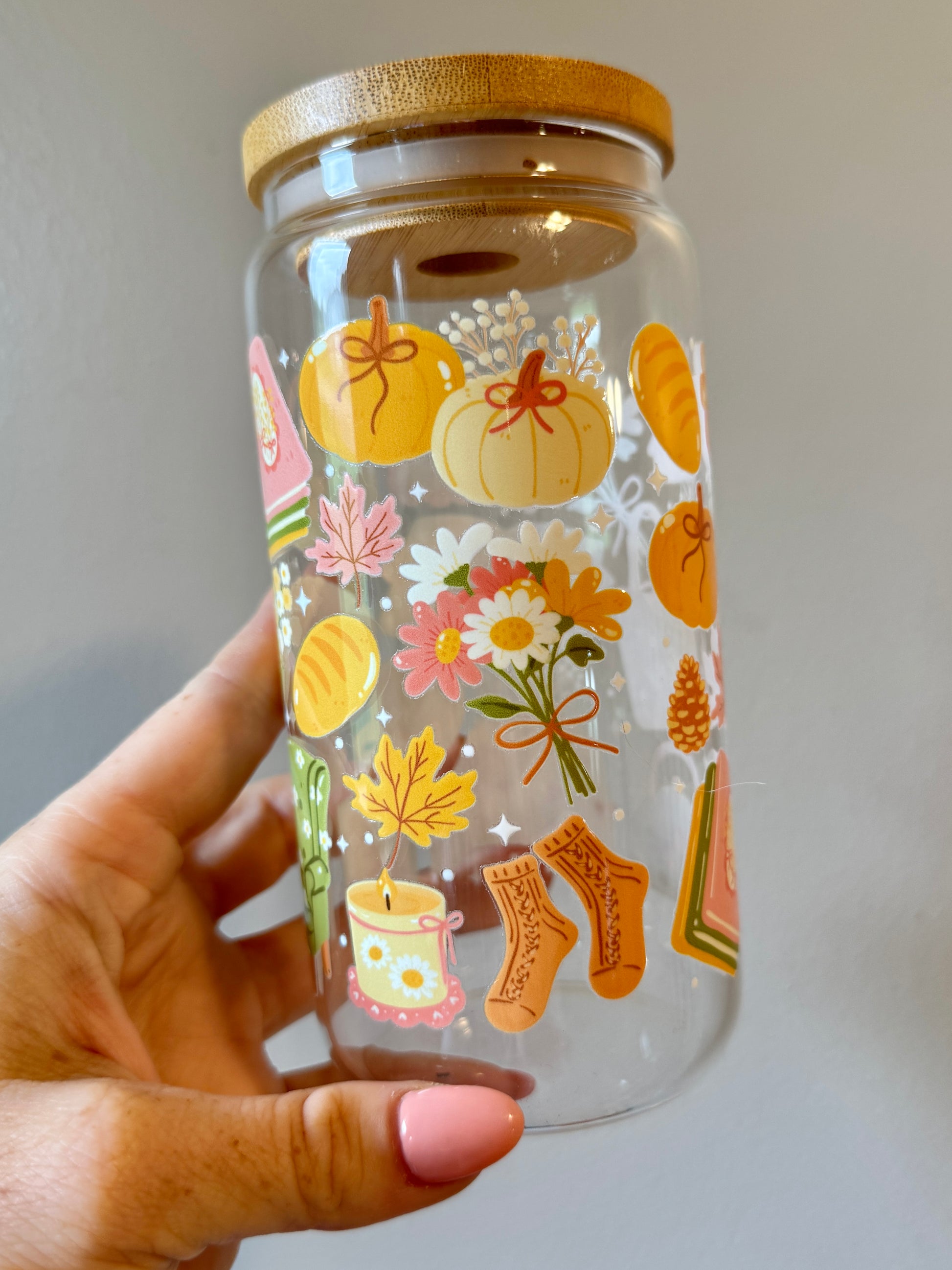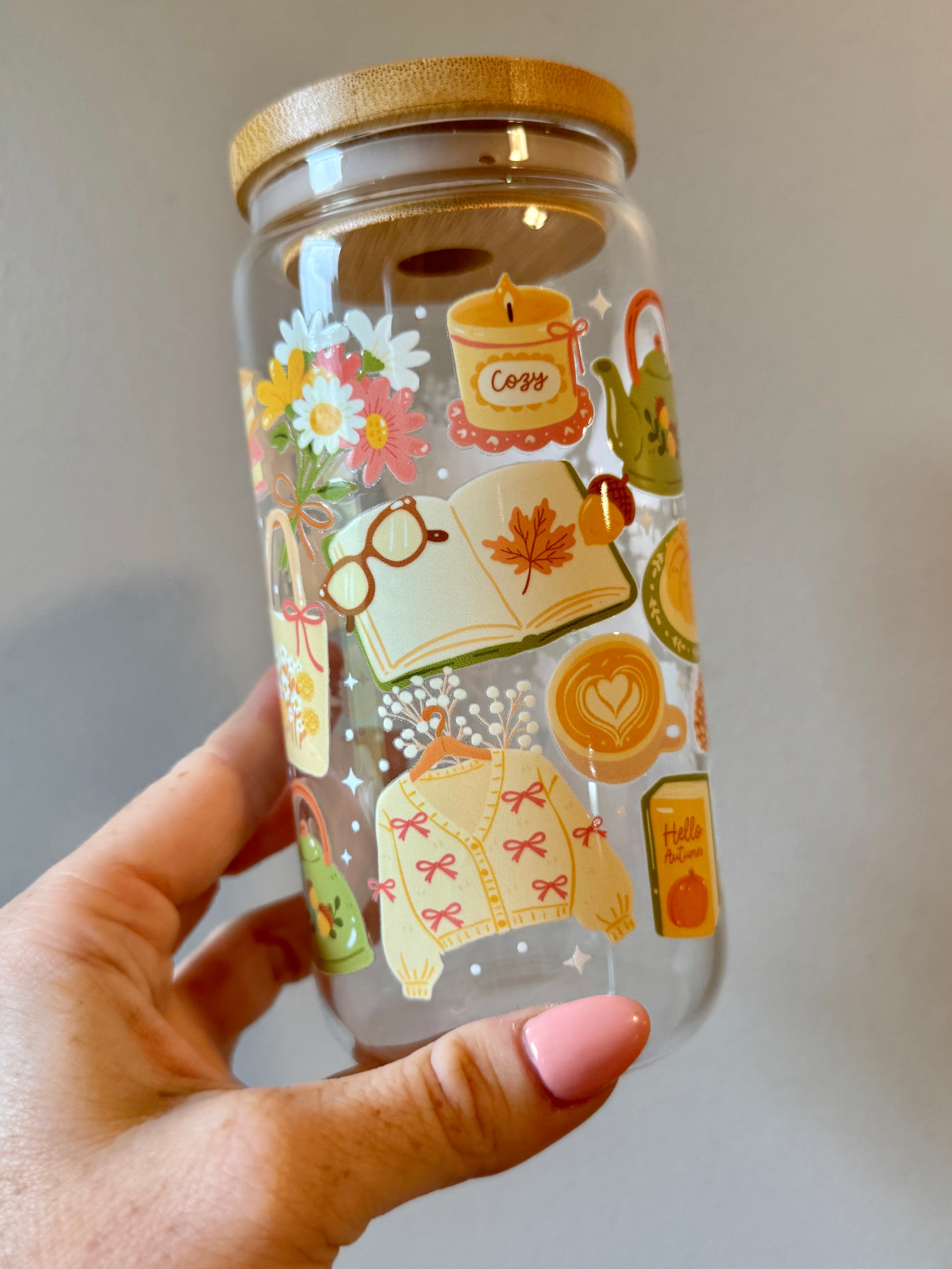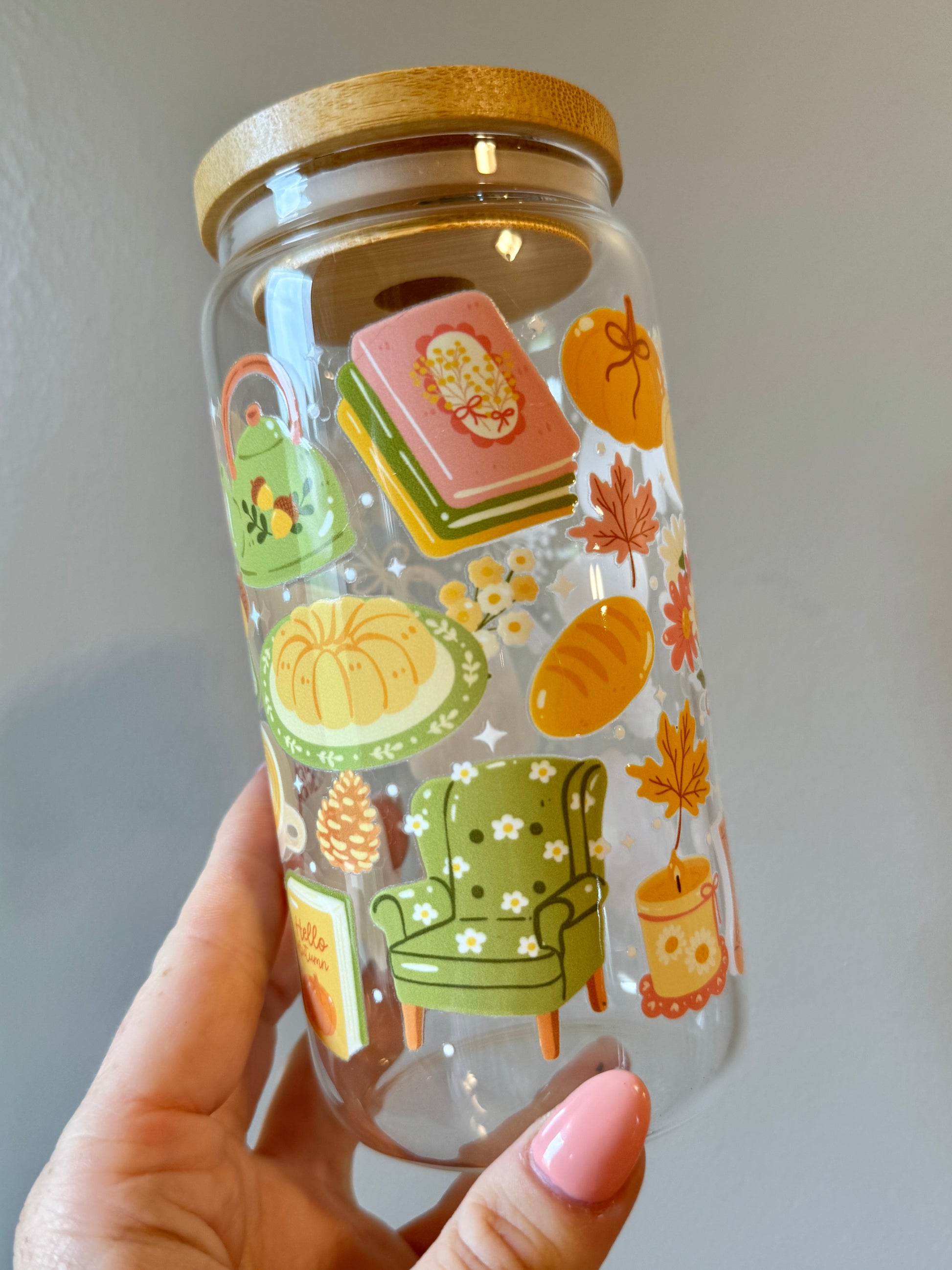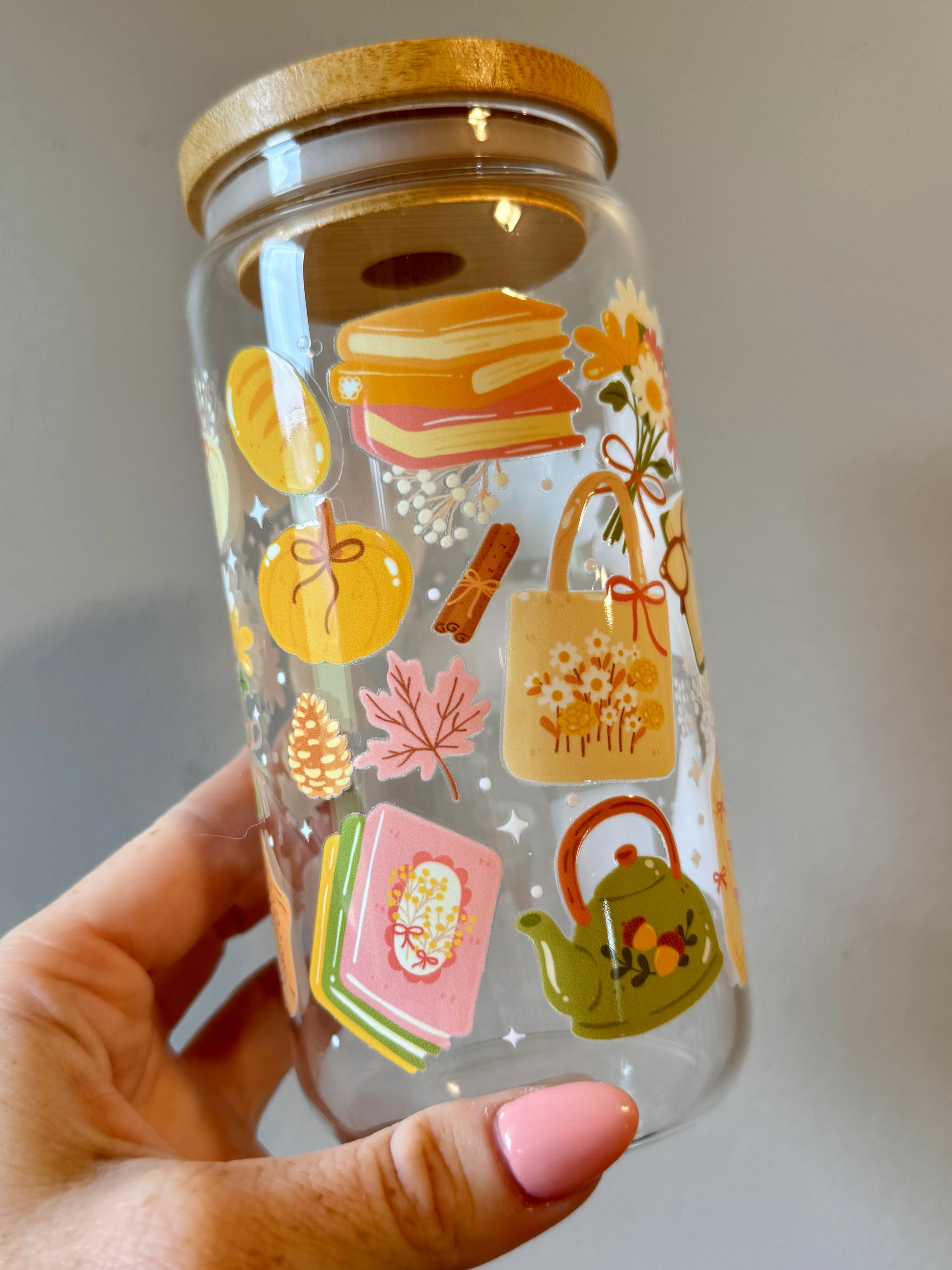 Soft yellows, pumpkins, books, and florals—this design captures that golden hour glow of autumn with the gentlest charm.