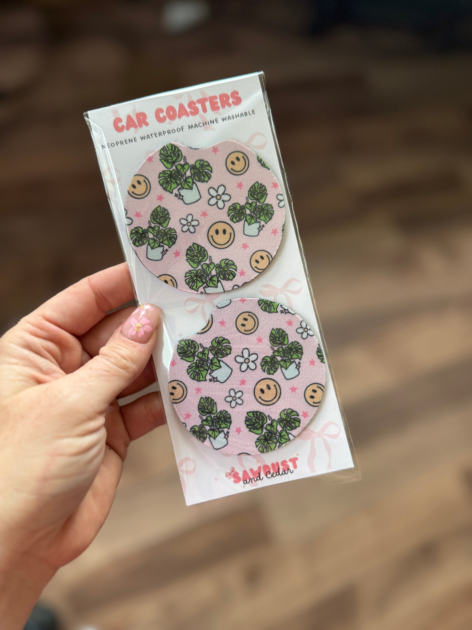 Happy Houseplant Car Coaster