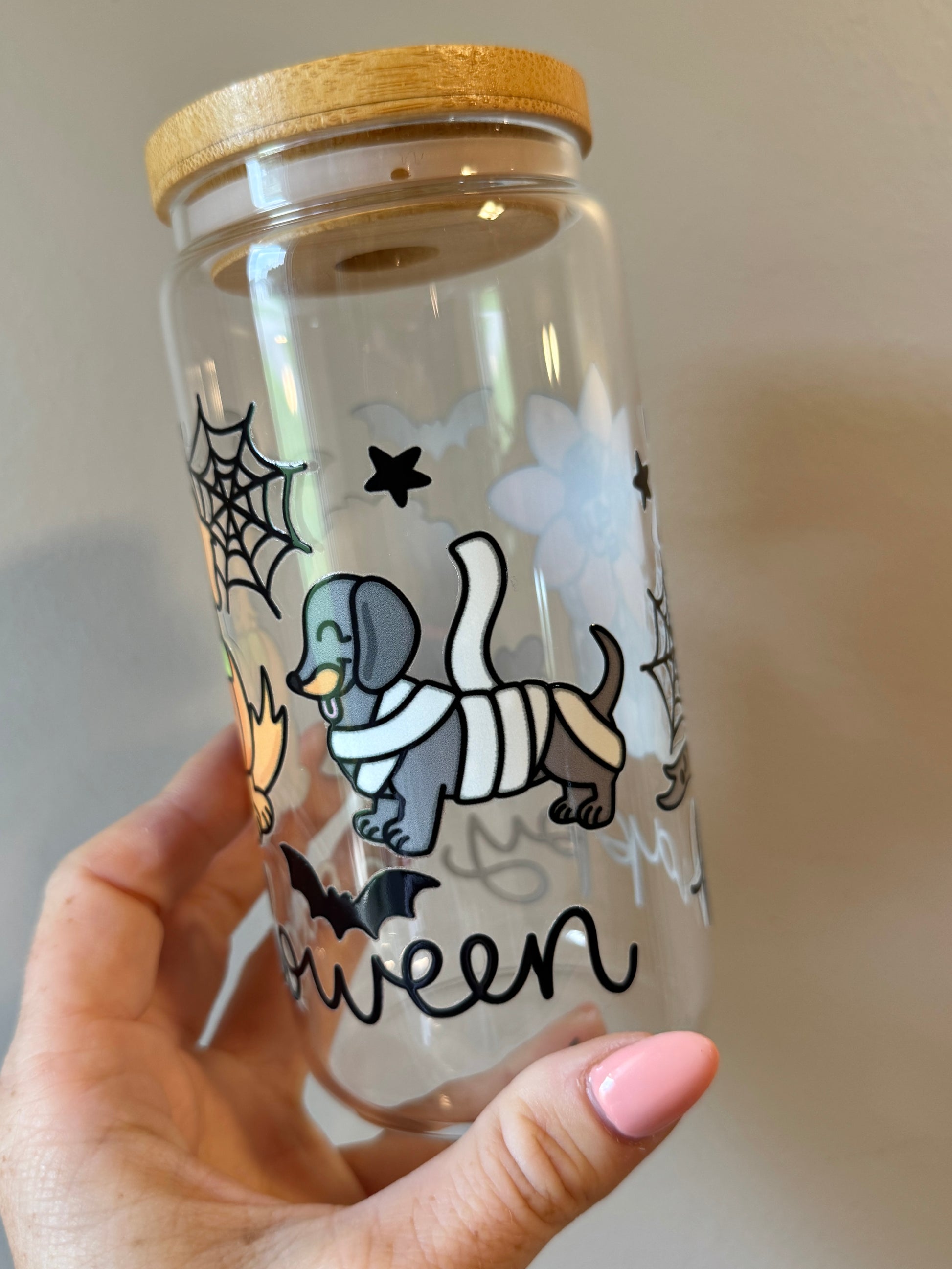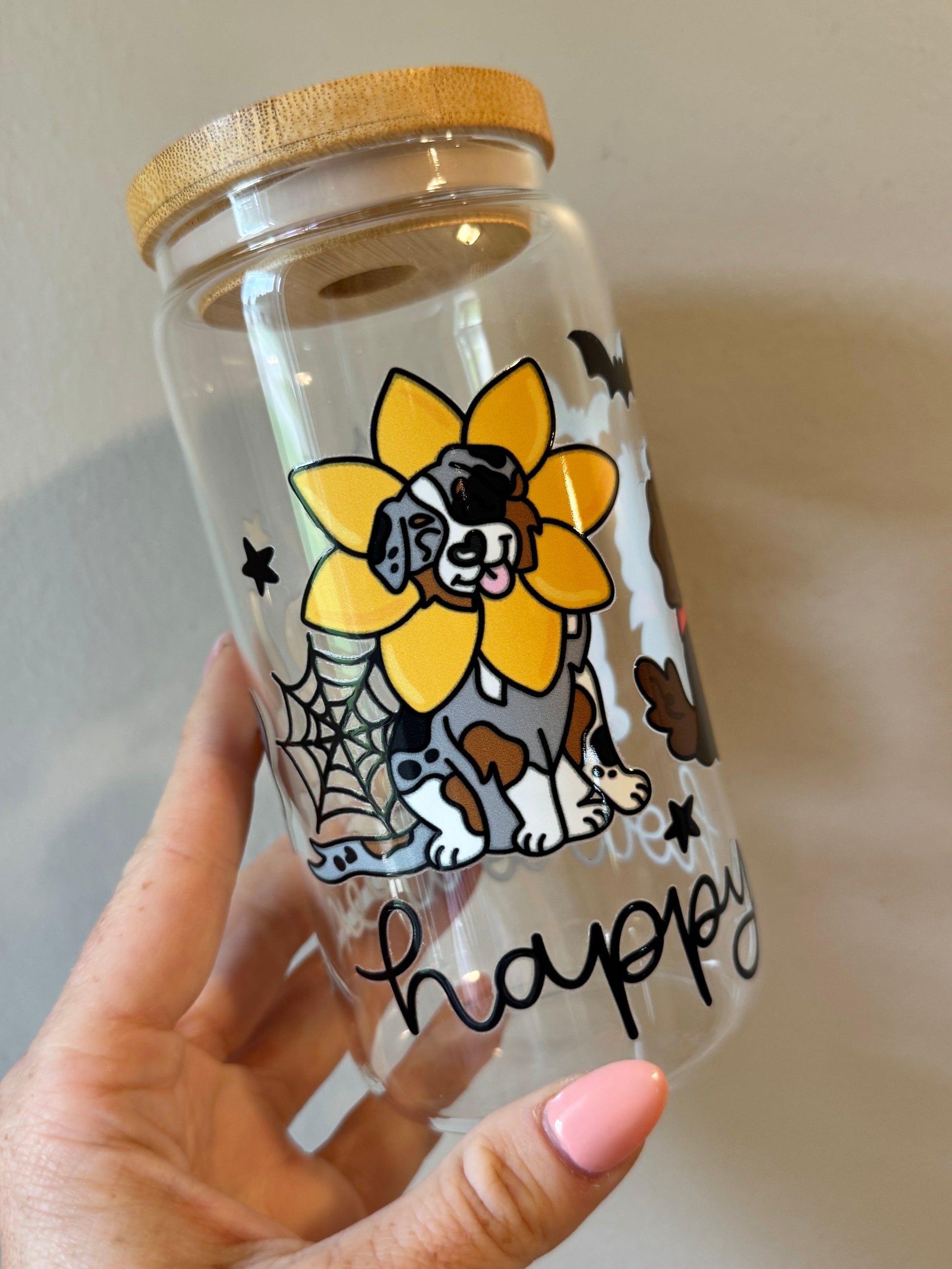 Dressed-up dogs, bats, and webs—this one’s for the Halloween-loving dog mom! Too cute to spook.
