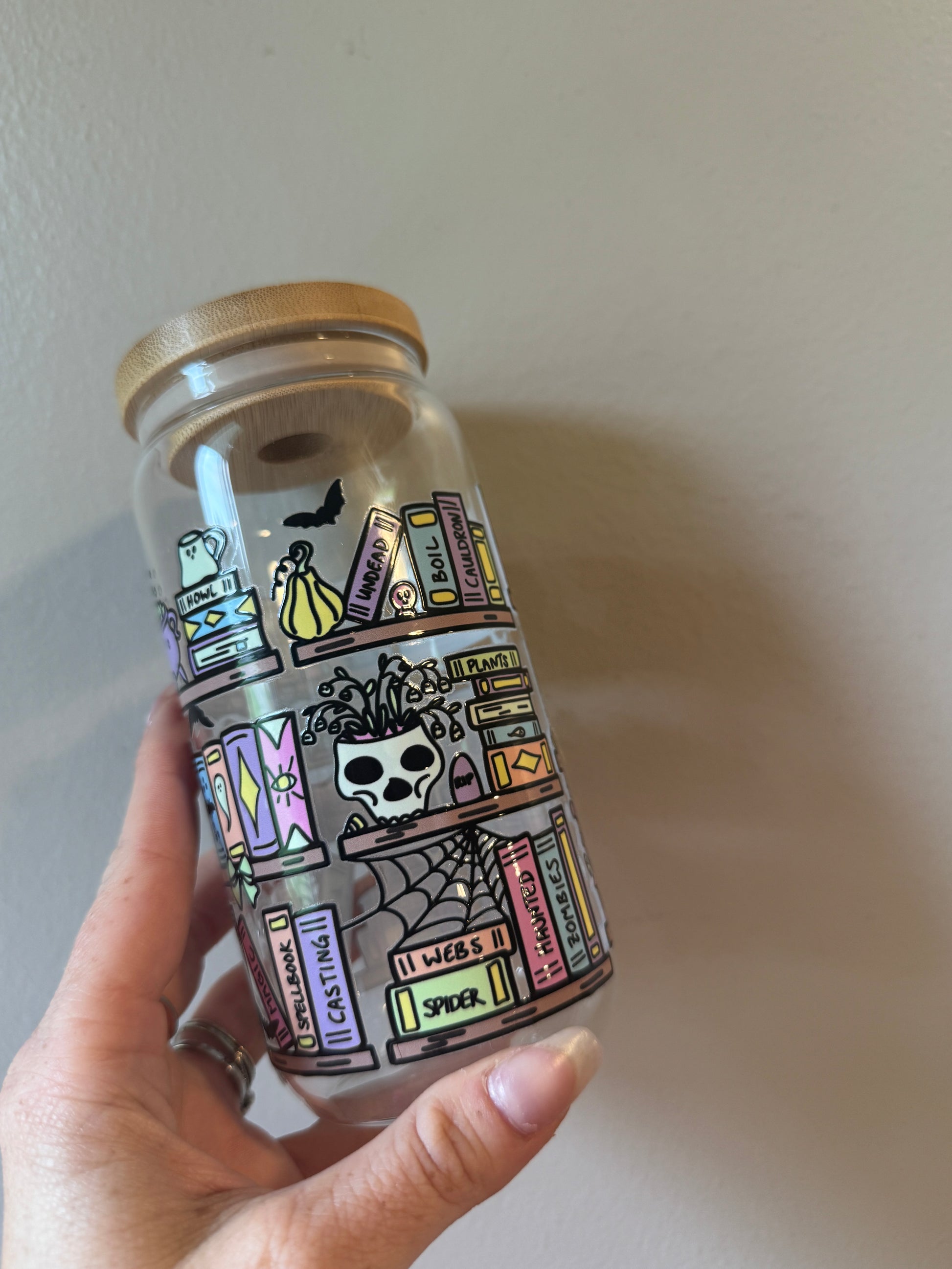 16oz glass cup – plastic available upon request. Message me on Insta!