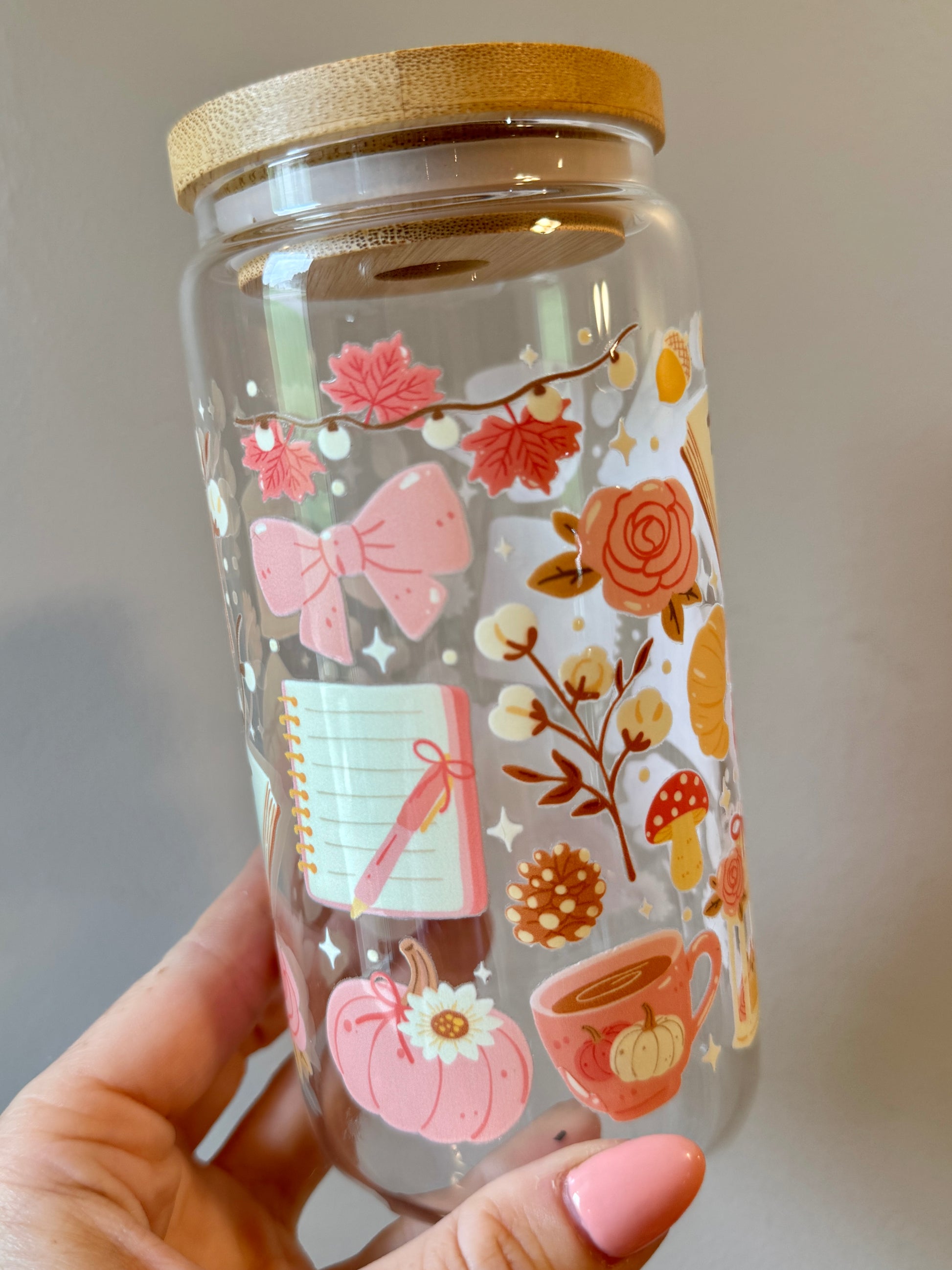 Whimsical and girly with soft pink pumpkins, gingham, and florals. Cozy up with this design for fall days and journaling sessions.