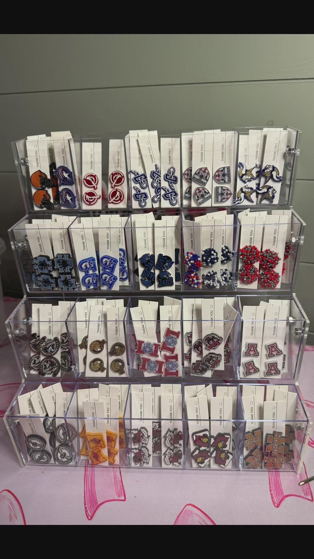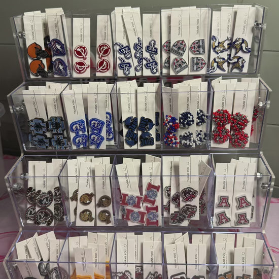 Show off your school spirit in style with our hand-painted, hypoallergenic acrylic earrings! 🎨✨ Designed for comfort and durability, these lightweight earrings are perfect for game days, pep rallies, or everyday wear. Each pair is crafted with love and attention to detail, making them a unique way to represent your team.