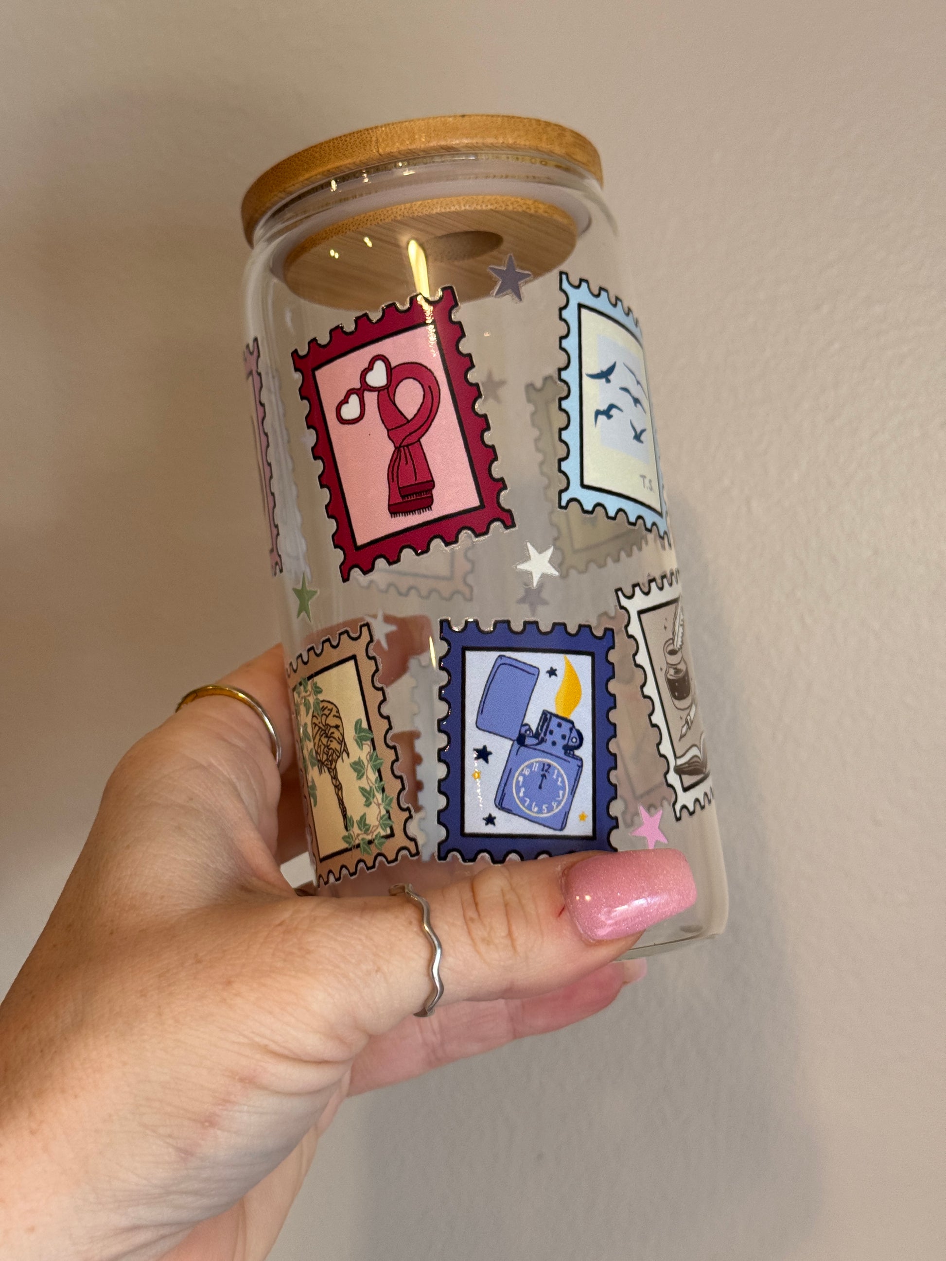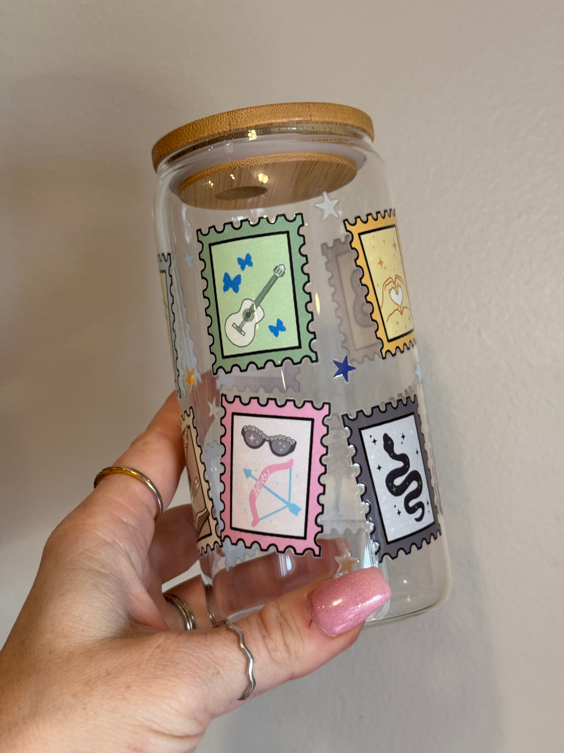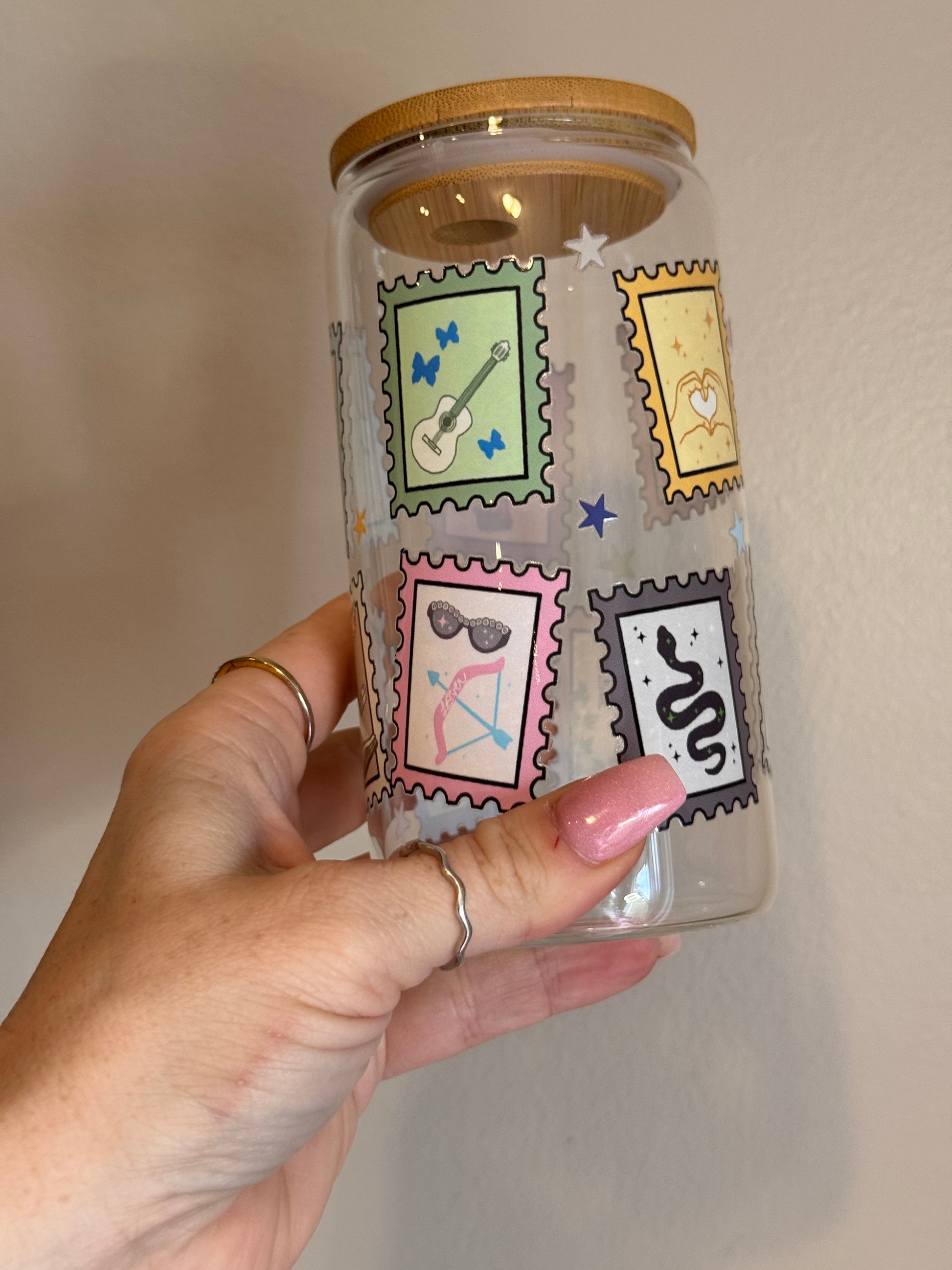 Sip in style and celebrate every era with the Taylor Swift - Postmarked with Love Glass Cup, the perfect drinkware for any devoted Swiftie! Featuring stunning postage stamp-style illustrations inspired by Taylor’s most iconic albums and unforgettable moments, this cup is a must-have for collectors and fans alike.