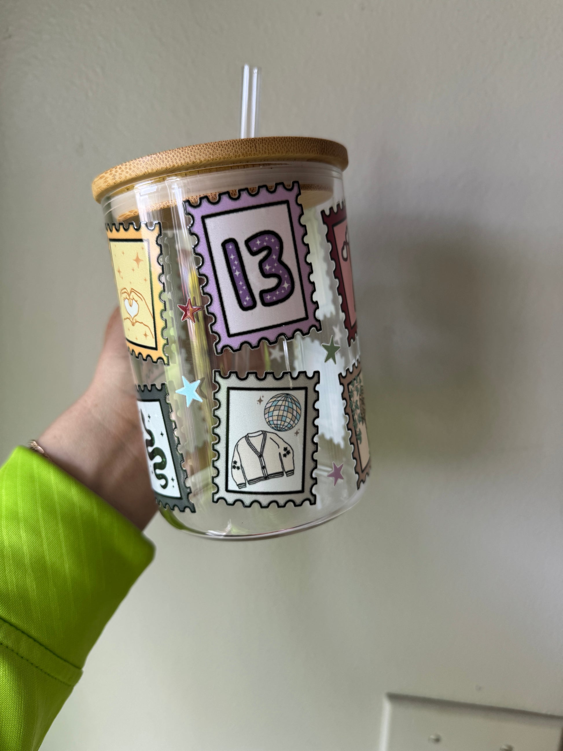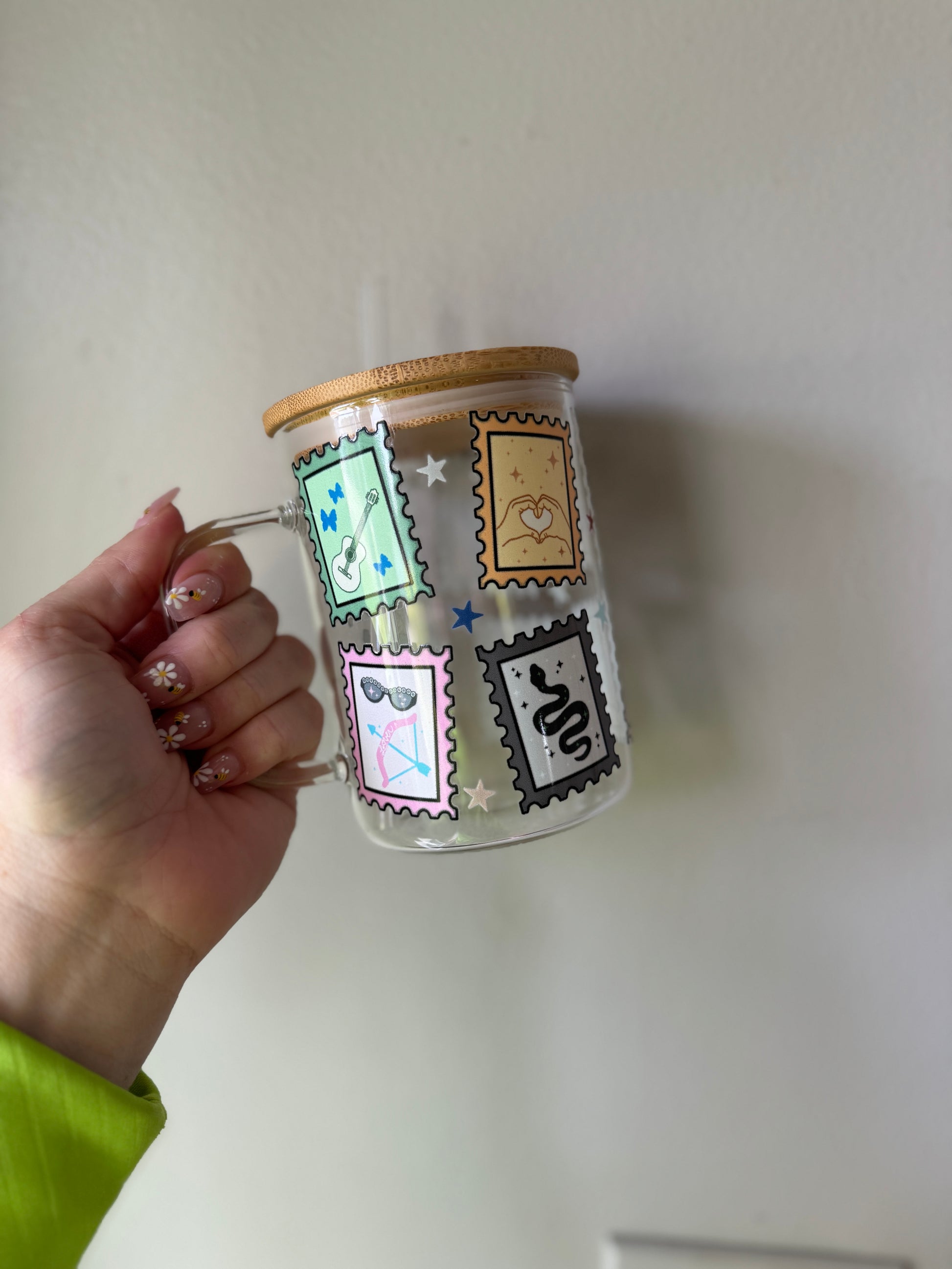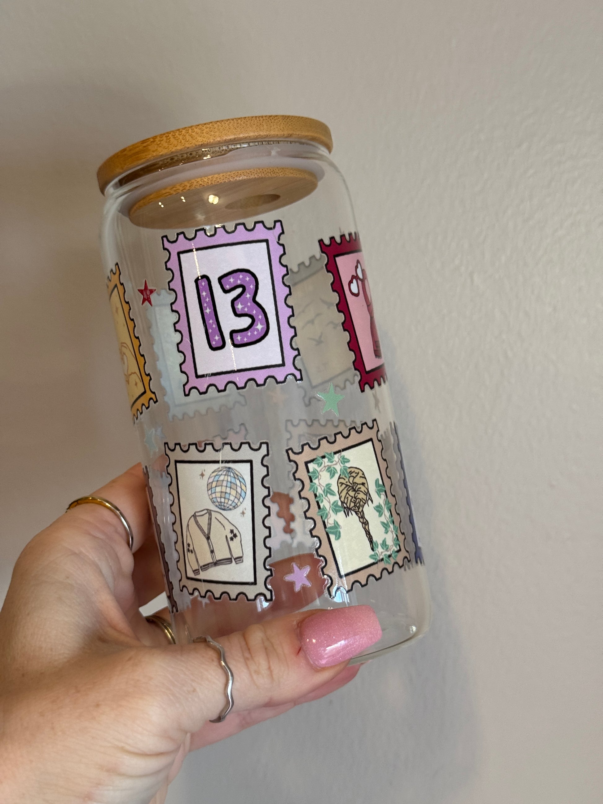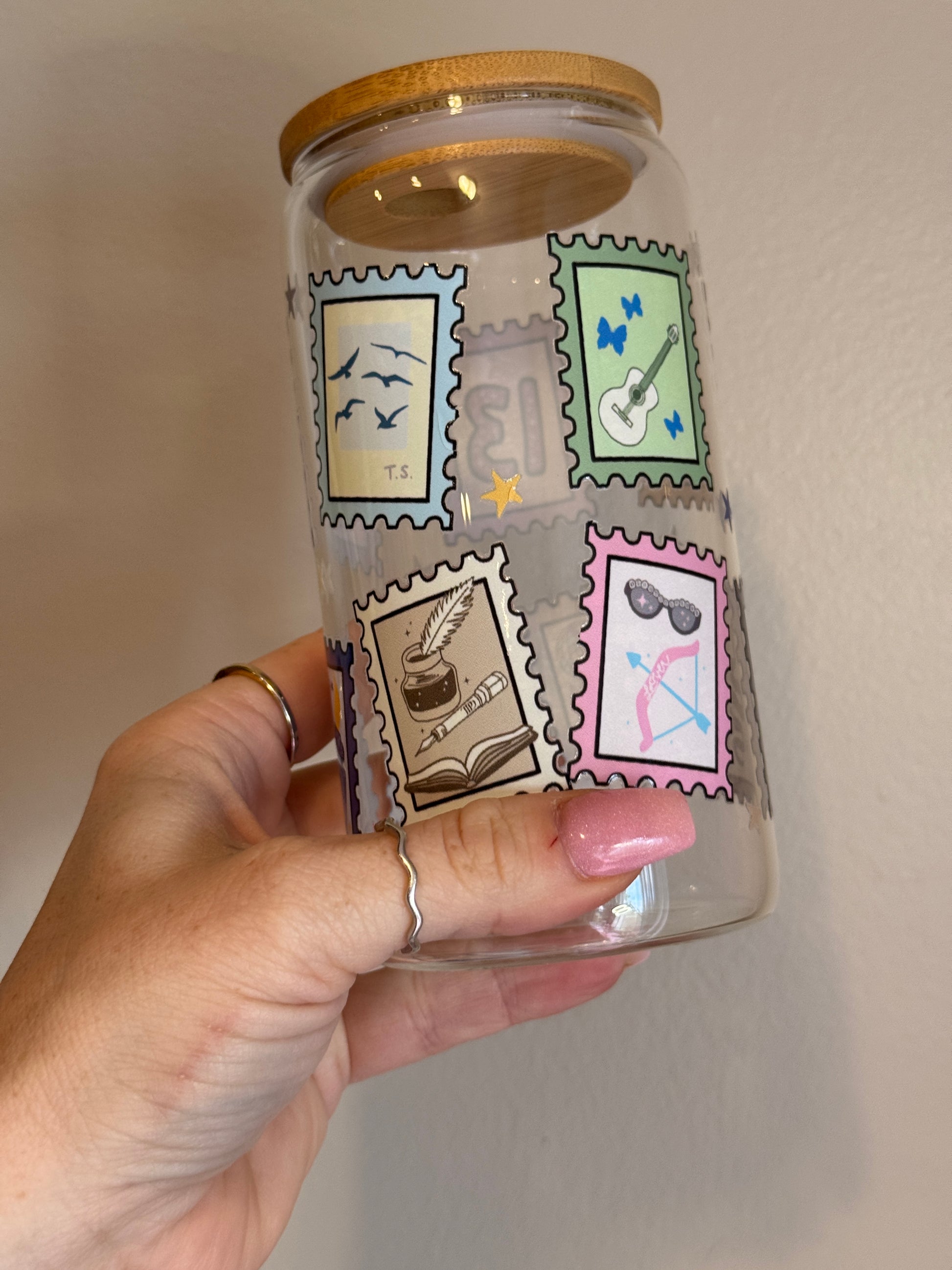 Sip in style and celebrate every era with the Taylor Swift - Postmarked with Love Glass Cup, the perfect drinkware for any devoted Swiftie! Featuring stunning postage stamp-style illustrations inspired by Taylor’s most iconic albums and unforgettable moments, this cup is a must-have for collectors and fans alike.