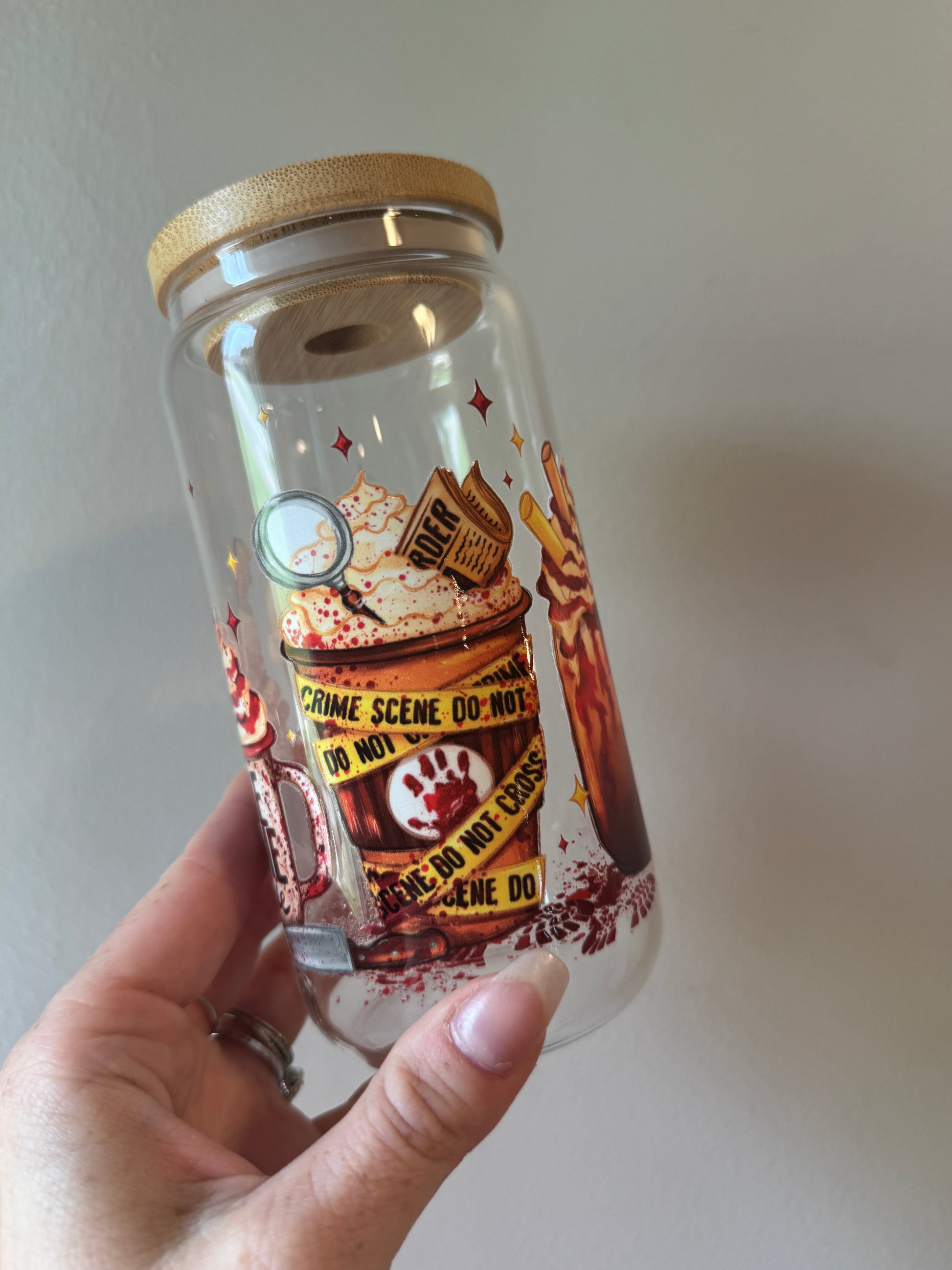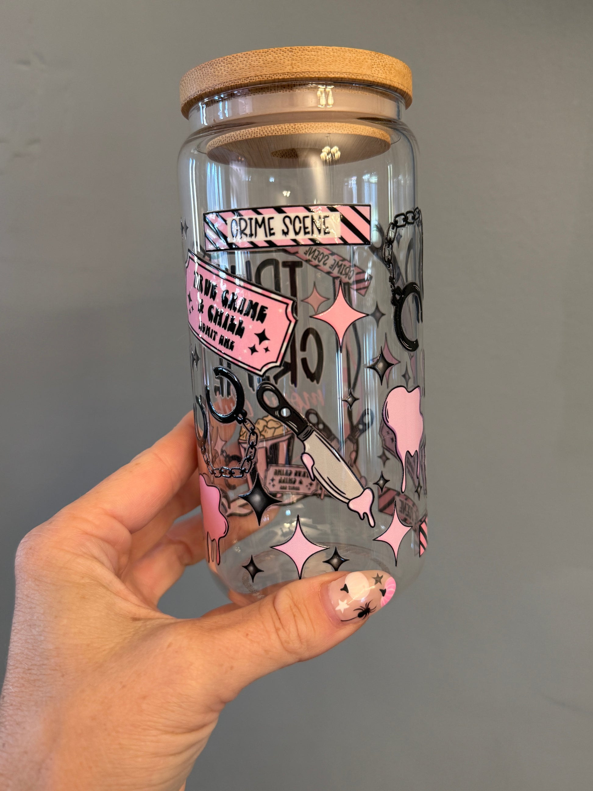 Blood splatter, caution tape, and a cozy crime scene? This one’s for the girlies who sip iced lattes while watching murder docs.
