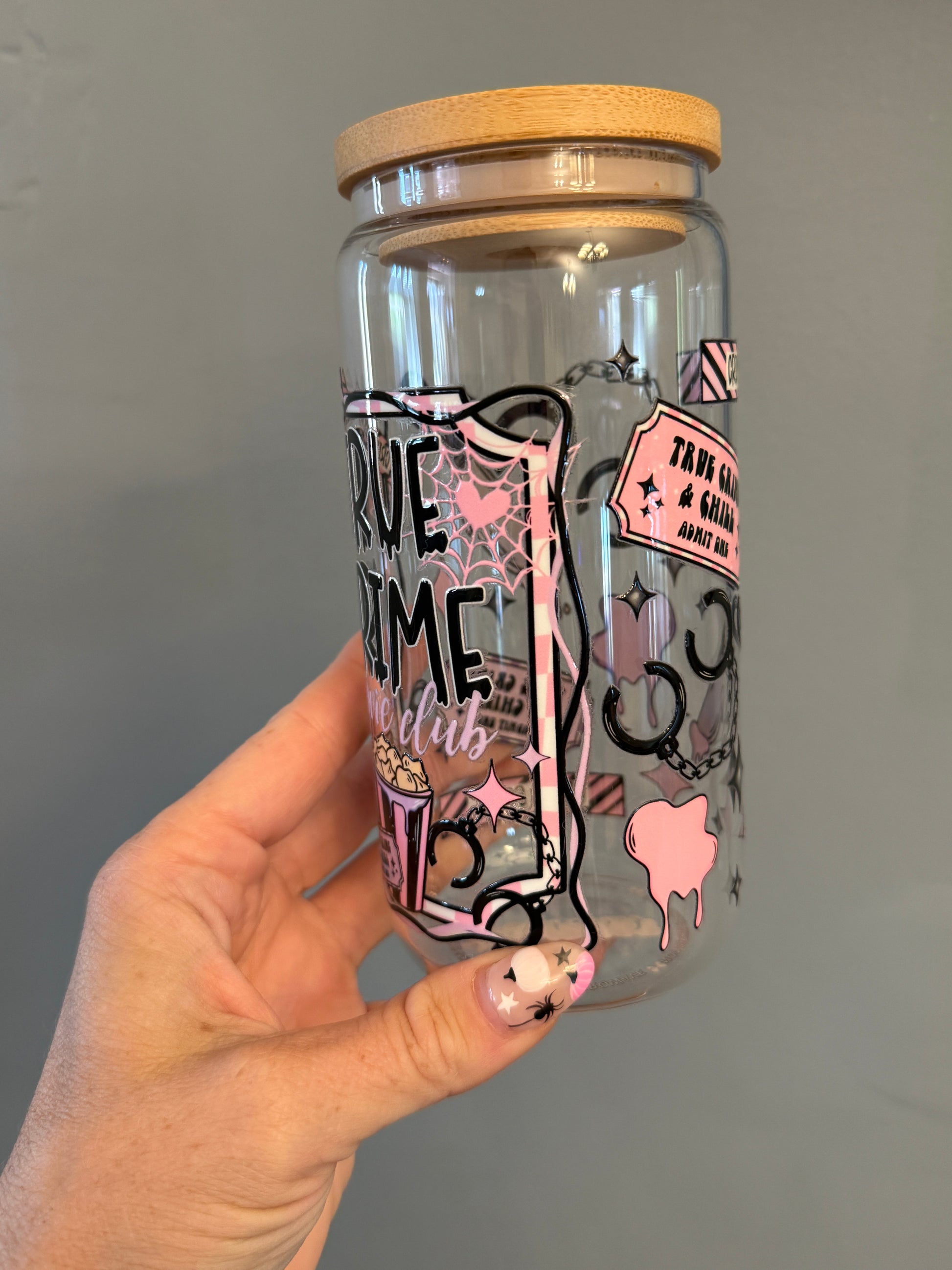 16oz glass cup – plastic available upon request. Message me on Insta!